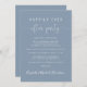Stylish dusty blue elopement or private wedding announcement and reception or celebration party invitation. On the front, "Happily Ever After Party" is written in a mix of simple white typography and an elegant white script with swashes, and you can personalise your message and invitation and add your names in a signature-like script. On the reverse side, input your wedding website URL address to create a QR Code for guests to scan for all of the details and to RSVP online and add your first names and wedding and reception dates.