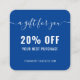 A minimalist blue and white discount card with QR code for a professional business to use as a promotional tool to develop customer loyalty. You can change the font, font colour, font size, letter spacing and background colour using the Design Tool. You can also change the social media icons so they are relevant to your business. The simple modern elegant design is yours to customise as you wish.