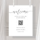 Welcome your guests in style with this elegant QR code sign, designed to link directly to your digital seating chart. Featuring modern handwritten script and clean typography, it’s a stylish and practical choice for couples who want a stress-free way to keep seating details up to date—even at the last minute. Simply add your seating plan page URL address, and Zazzle will automatically generate and place your personalised QR code. Be sure to scan the preview to confirm it links correctly before ordering. The 8" x 10" size shown is just an example, as you can choose from a variety of sizes to best suit your display. Printed on premium poster paper, it’s easy to frame or mount onto MDF or foam board. If you’d prefer a ready-to-display foam board, scroll to the “Transfer design to a product” section on this page, browse until you find “Foam Boards". (If it first transfers into a larger size, you can easily resize it on the product page and preview how it will look on a stand.) Please note that while the cart may list the back as “blank,” don't worry about it; the back will actually be white. Part of our "Modern Elegant Wedding & Event Signage" collection, this design can be paired with coordinating pieces for a polished and cohesive look. If you need help, just send me a message—I’ll be glad to assist. Dimensions of sign in demo photo with stand: 18" x 24"