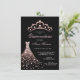 Modern and elegant quinceañera - Mis Quince años invitations. Pink and black with faux diamond tiara (crown) and gown dress. Easy editable cards. Perfect for that special girl on her 15th birthday.