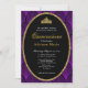 This elegant purple and black art deco quinceanera invitation has purple arches, a gold tiara crown, and a gold glitter oval with a personalizable template to create your own message. The invitation template is customizable in the listing editor and is also available as a digital download that's printable after you personalize it.