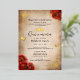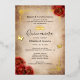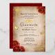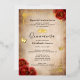 Create your own elegant red quinceanera invitations accented in real gold foil (available also in silver and rose gold). The vintage floral art by Raphaela Wilson depicts dramatic dark red watercolor roses, sparkle butterfly confetti, a filigree gown / dresses border, and a royal princess crown / tiara. Keep the aged old scroll parchment paper background, or add your own texture or image. If you wish to include your own picture on the back, such as a glamorous Mis Quince Anos photo, it is as easy as uploading your own image. These luxury parchment paper invitations can be reworded to compliment red and gold weddings, a Mexican fairytale princess sweet 16 birthday party, royal baby shower for a girl, a once upon a time bridal shower, or other unique, special occasions. Feel free to change the black calligraphy script and modern fonts to another typography style of your choice by further customizing the floral design on these personalized DIY template invitations. Enjoy! Category: vintage red rose wedding invitations, personalized quince invites with butterflies / flowers, and custom parchment paper stationery with real gold foil. Red and gold theme party colors: burgundy, dark red, maroon, marsala, light tan, brown, gold, black and white.