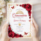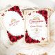 Red, gold and white elegant floral Quinceanera invitation. Features script font, gold butterflies, red roses, tiara and faux glitter confetti. Perfect for a glam chic princess style celebration. Personalise with your own details. Printed Zazzle invitations or instant download digital printable template.