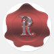 Elegant red wax seal look sticker with graphics of an ornate silver tone and red monogram letter R, in the middle. Lovely finishing touch to special occasion invitations and greeting card envelopes.