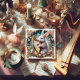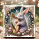 Elevate your Easter wishes with this elegant card featuring a whimsical bunny rabbit playing music on a harp amidst a floral wonderland, in an art nouveau style frame. Let the musical notes of spring fill the air as you send a pretty and whimsical greeting to your loved ones. All text is customisable.