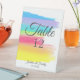 Beautiful rainbow wedding table number sheet with pretty, artistic paint strokes full of bright colour. This colourful party reception table number pedestal sign is perfect for an artistic couple or a gay and lesbian reception. The cheerful design is completed with the LGBTQ couple's name and date.