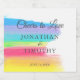 Beautiful rainbow wedding party sparkling wine label with pretty, artistic paint strokes full of bright colour. This colourful design is perfect for an artistic couple or a gay and lesbian reception. Cheerful and modern champagne labels for your LGBTQ event.