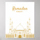 Celebrate the spirit of Ramadan with this beautifully designed wall print featuring a golden mosque silhouette and graceful "Ramadan Kareem" typography. Perfect for adding a touch of elegance and spirituality to your home décor during the holy month. Ideal for gifting or personal reflection, this minimalist Islamic art piece brings warmth and reverence to any space.