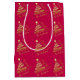 Elegant Raspberry Red Gold Foil Christmas Tree Medium Gift Bag