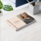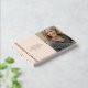In Loving Memory, Funeral / Celebration of Life photo guestbook, with a simple, minimal, and elegant design with a soft velvety hardcover in an attractive peach tone, and real foil stripes, and text details. Choose from three size options and three foil colours: gold, silver, or rose gold. Personalise it with your loved one information on the front and spine and add on the back any message you like.