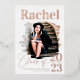 This elegant and modern graduation invitation is perfect for your special day. It features real rose gold foil typography including the graduate's name, graduation year, and "Class of," on top of a simple white background and a brushstroke cut-out halo photo of the guest of honour. It's minimal, chic, unique, and stylish; the perfect design to impress your guests.