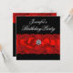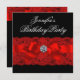 Elegant red and black birthday party invitation template. Add your details to the front and back of this beautiful red and black birthday party invitation by simply choosing the "Customise it" button to begin adding your event details, font style, font size & colour, and wording. Please note - all of the invitation designs you will find on Zazzle are printed graphics on flat paper stock with no actual jewels, bows, raised, embossed, or added parts or pieces.