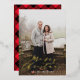 Elegant foil holiday card featuring "Merry Christmas" displayed in gold foil script. Personalise the front of the foil Christmas card with your favourite vertical photo and name. The card reverses to a red and black buffalo plaid pattern with space for additional photos or text. Placeholder photo © John Hope Photography: www.flickr.com/people/johnhopephotography and provided by Creative Commons Attribution 2.0 Generic: https://creativecommons.org/licenses/by/2.0/