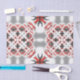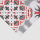 This tissue paper features a unique and intricate design that combines geometric and organic elements to create a visually striking pattern. The central motif is a symmetrical, kaleidoscopic arrangement of shapes resembling stylised floral patterns, with a bold colour palette of red, black, and white. This contrast enhances the complexity of the design, making it stand out. Surrounding this are softer grey shapes that provide a sense of depth and contrast to the sharper central figures. The overall effect is one of elegance and dynamism, making this tissue paper an eye-catching option for gift wrapping or crafts that require a touch of sophistication and artistic flair.