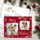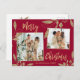 Elegant Red and Gold Botanical 2 Photo Christmas Postcard