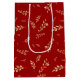 Elegant Red and Gold Foil Botanical Pattern Medium Gift Bag