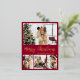 Elegant Calligraphy Minimalist Red and Gold Foil Script 4 Photo Collage Merry Christmas Holiday Postcard. This festive, mimimalist, whimsical four (4) photo holiday card template features a pretty photo collage. The „Merry Christmas” greeting text is written in a beautiful hand lettering brush script font type in gold on burgundy red colour background. On the reverse side with greeting text template with a little heart doodle on white and one photo template. Pretty greeting card for your family and friends in Christmas Holiday season.