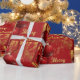 Traditional elegant red and gold sparkling Christmas gift wrap. Coordinate your Christmas presents with the many other items with the same design.
