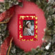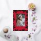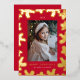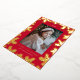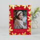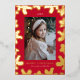 Elegant foil holiday card featuring your vertical photo framed by gold foil pine boughs with a red background. Personalise the foil pine branch holiday card with a custom greeting, the year, and your family name. The card reverses to display your custom message in white lettering.