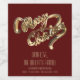 Elegant Faux Gold Foil Script Merry Christmas on Bordeaux Red Background, Wine or sparkling wine Bottle Label, Unique Christmas Gift for family, friend, colleagues and business associates. Add Name, Address and Website.