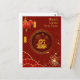 Celebrate the Lunar New Year with this vibrant postcard featuring a striking gold snake framed by a traditional Chinese circular border. Glowing lanterns, festive fireworks, and a deep red background create an atmosphere of prosperity and joy. Intricate fan accents add a touch of cultural elegance, making this design perfect for sending warm wishes to family and friends. Embrace good fortune and new beginnings with a card that truly captures the spirit of this special holiday.