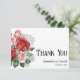 An elegant wedding thank you card featuring red and pink roses and baby's breath flowers.