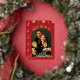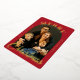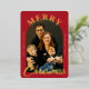 Elegant Christmas photo card. Says Merry Christmas in read foil. The photo is surrounded by arched dome shaped red frame.