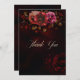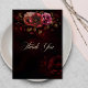 Elegant chic dark red burgundy and black wedding thank you cards invitation with beautiful flowers and green leaves. An enchanting fusion of elegance and gothic charm. These beautiful invitations are in rich black and red hues. The calligraphy is elegant and chic and can be easily customised. Romantic and modern floral wedding invitations with classic colours that never go out of style.