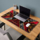 Elegant red black gold girly geometric desk mat. To make it extra special, it is also monogrammed and personalised with name or initials or any text you like, click the "customise further" link and use the design tool to modify the design if you like.