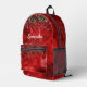 Chic black and red and gold glitter monogram Personalised Backpack. To make it extra special, it is also monogrammed and personalised with name or initials or any text you like, click the "customise further" link and use the design tool to modify the design if you like.
