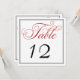 Elegant Red Black & White Script Table Number Card