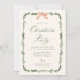 Invite loved ones to celebrate the season with this classic Christmas party invitation featuring a watercolor pine garland and a red and white striped bow at the top. The soft cream background complements the greenery beautifully, while “Christmas Party” appears in elegant green calligraphy for a timeless holiday look. Perfect for cozy gatherings, office celebrations, or festive holiday dinners, this invitation offers a simple yet sophisticated design that captures the warmth and spirit of the season.