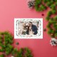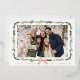 Share festive greetings with this elegant gold foil Christmas photo card featuring a watercolor greenery garland frame and classic red striped bow on a white background. The front showcases your favourite photo, with “Merry Christmas” and your family name in shimmering gold foil lettering along the bottom. The coordinating back in deep evergreen provides space for your personalised holiday message, creating a timeless two-sided keepsake with traditional red ribbon and greenery details.