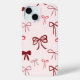 Protect your phone with this cute and chic red bow design on a pastel pink background — perfect for a feminine festive look.