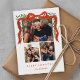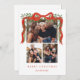 Elegant Red Bow with Greenery 3 Photo Christmas Holiday Card