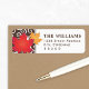Fall themed address stickers / labels feature a pattern of scrolling swirls and maple leaves with custom return address. Rich autumn colours include orange, red, copper, gold, and chocolate brown. Ivory / ecru background.
