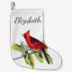 Elegant Red Cardinal Bird & Name in Script Small Christmas Stocking
