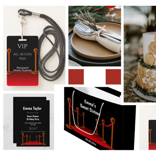 Red Carpet Hollywood - Sweet 16 Black Background Designed by N Liliana