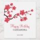 Elegant Red Cherry Blossom Sakura Floral Birthday Wine Label