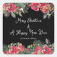 Elegant Red Christmas Flowers Black Background Square Sticker