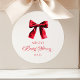 Elegant Red Coquette Bow Bridal Shower Classic Round Sticker