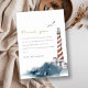 ELEGANT RED DUSKY BLUE LIGHTHOUSE SEA WAVE WEDDING THANK YOU CARD