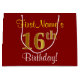 Elegant, Red, Faux Gold 16th Birthday; Custom Name Large Gift Bag