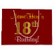 This simple, elegant birthday gift bag design features a personalised message like "NameHere’s 18th Birthday!" (with the "18th" having a faux/imitation gold-like colouring look) on a red coloured background. The name is in script-like, yellow-coloured text, and can be personalised. A personalised birthday gift bag like this could perhaps be used when giving a present or gift to somebody who is celebrating their eighteenth birthday. [~Z0000253]