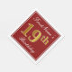 This simple and elegant paper napkin design features a message like "FirstName’s 19th Birthday" (with the "19th" having a faux gold-like colouring) within a red-coloured square area featuring a simple border outline. The name is in a white-coloured script-like text, and can be personalised. Napkins like these could perhaps be used at a birthday party for somebody who is celebrating their nineteenth birthday. [~Z0000138]