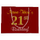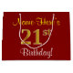 Elegant, Red, Faux Gold 21st Birthday; Custom Name Large Gift Bag