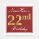 Elegant Red, Faux Gold 22nd Birthday + Custom Name Napkin