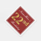 This simple and elegant paper napkin design features a message like "NameHere’s 22nd Birthday" (with the "22nd" having a faux gold-like colouring) within a red-coloured square area featuring a simple border outline. The name is in a white-coloured script-like text, and can be personalised. Napkins like these could perhaps be used at a birthday party for somebody who is celebrating their twenty second birthday. [~Z0000138]