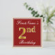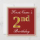 Elegant, Red, Faux Gold 2nd Birthday + Custom Name Invitation
