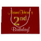 Elegant, Red, Faux Gold 2nd Birthday + Custom Name Large Gift Bag